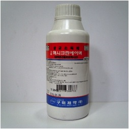 | 성분 및 함량 분제 100ml중 글루콘산 클로르헥시딘 -------------------- 25ml 성상 향근한 냄새가 나는 주황색 투명한액 효능 및 효과 손 및 피부의 소독 - 수술부위의 피부소독의료용구의 소독 - 가구,기구 등의 소독 피부의 창상부위 소독 용법 및 용량 글루콘산 클로르헥시딘으로서 용도에 따라 다음의 농도로 희석하여 사용한다. 1) 손 및 피부의 소독 : 0.1~0.5% 수용액 2) 수술부위의 피부소독, 의료용구의 소독 : 0.1~0.5% 수용액 또는 0.5%에탄올 용액 3) 가구,기구 등의 소독 피부의 창상부위 소독 : 0.5% 수용액