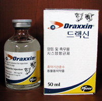 특징 - 드랙신은 축산에 전문적으로 개발된, 완전히 새로운 항균물질 툴라스로마이신 성분으로, 다음과 같은 - 특장점을 제공함으로써 돼지와 소 호흡기 질병 처치를 위한 1차 선택약입니다. - 빠른 치료 효과: 1시간 내로 빠르게 최대 혈장 농도에 도달 - 강력한 지속 효과: 1회 주사로 15일까지 가장 길게 효능 지속