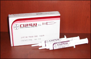 앰피실린에 내성균주를 고려한 디크록사실린을 주제로한 제제로서 특수 부형제를 사용하여 1회 주입으로 45일 이상 약효가 지속되도록 한 제품 성분 및 함량 본제 1시린지(7.5g)중 Dicloxacilin sod ---------------------- 500mg(역가)효능 포도상 구균, 연쇄상 구균, 코리네박테리움균에 의한 유방염의 예방 및 치료를 위하여 마지막 착유를 한 후 사용하는 건유기용임.