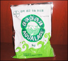 양어 사료에 참가가 가능하도록 특수 부형제를 혼합한 복합 소화제임 성분 및 함량본제 1kg중Protease 100,000IU.
