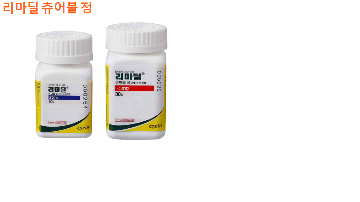 리마딜 츄어블은 한 정당 카프로펜 25mg가 함유되어 있으며 한 통에 60정이 들어 있습니다.