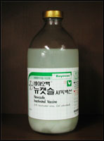 효능닭의 뉴캣슬병 예방 용법 및 용량근육 또는 경부피하 주사접종법으로 백신 시기와 방법은 각 농장의 백신PROGRAM 에 맞추어 투여한다.