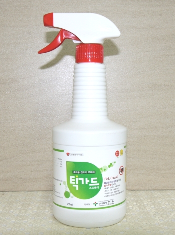 사용방법 - 진드기, 바구미, 침노린재 등의 구제 : 본제를 진드기 등 오염지역에 골고루 분무한다. - 가축 또는 축사 내외부에서 진드기 발견시 발견부위에 분무하십시오. - 진드기 서식 또는 오염가능지역에서 활동하고자 할 경우 해당지역에 분무한 다음 활동하십시오. - 축주 및 양봉업자 등 작업자가 들이나 산에서 작업을 할 경우 신발, 바지 및 옷소매(또는 토시) 부위에 분무한 다음 작업하십시오. - 작업도구를 풀숲에 놓아야 할 경우 작업도구에 분무한 다음 놓아두십시오. - 강아지 산책시 다리 및 피모부위 털 위에 분무한 다음 산책하십시오. ※ 살인진드기 예방법 ㆍ들판 또는 산에서 작업시 피부노출을 최소화한다. ㆍ작업시 소매와 바지끝을 단단히 여미고 토시와 장화를 착용한다. ㆍ풀숲에 눕거나 용변을 보지 않는다. ㆍ작업 후 입었던 옷은 털어서 세탁하고 목욕한다. ㆍ진드기 발견시 즉시 동물약품으로 구제한다. ㆍ진드기서식지역이나 오염지역은 주기적으로 진드기 구제제를 분무한다. ㆍ풀이 있는 곳에서 작업시 신발, 바지 및 소매부위에 틱가드를 분무한 후 작업한다. 주의사항 - 취급자 및 가축의 피부, 호흡기, 눈 등에 직접 접촉이 되지 않도록 하십시오. - 분무할 때에는 마스크, 장갑, 보호안경 및 보호의를 착용하십시오. - 사료통이나 사료 등을 치우거나 묻지 않도록 가린 다음 분무하십시오. - 어류에는 독성이 있으므로 분무하다 남은 약제를 연못이나 강물에 버리지 마십시오. - 유효기간이 경과한 제품은 사용하지 마시고 안전하게 폐기처리 하십시오. - 안전사고 방지를 위하여 어린이의 손이 닿지 않고 동물의 접근이 불가능한 곳에 보관 하십시오.