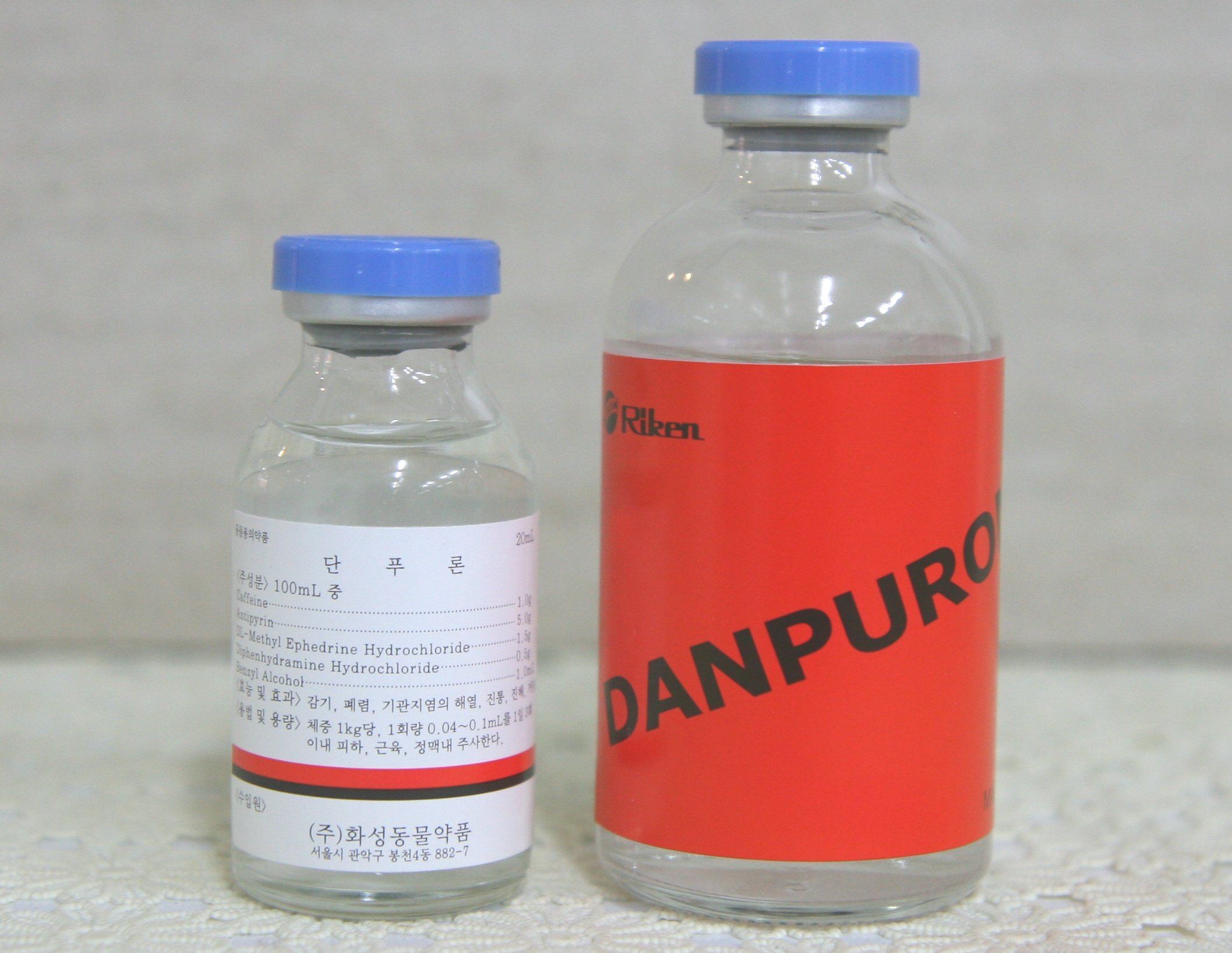 성분 100ML중 Caffeine-------------------------------------1.0g Antipyrin------------------------------------5.0g DL-Methyl Ephedrine Hydrochloride------------1.5g Diphenhydramine Hydrochloride----------------0.5g Benzyl Alcohol0------------------------------1.0ml