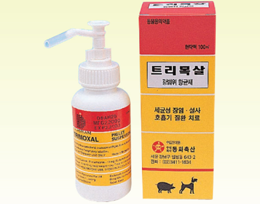 트리목살은 - 자돈의 살모넬라, 파스튜렐라, 대장균 감염증의 예방 및 치료제로, - 싱가폴의 DIASHAM사가 개발한 설파메톡사졸과 트리메토프림의 합제로서 - 우수한 치료 효과 및 양딸기향의 독특한 맛으로 기호성이 높아 - 자돈의 소화기 질환과 호흡기 질환 치료에 1차적으로 선택할 수 있는 치료제입니다.