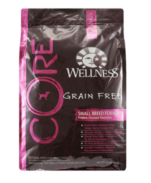 웰니스 코어 그레인프리 스몰브리드포뮬라는 소형견을 위한 제품으로, 웰니스 전 제품군 중 가장 단백질 함량이 높은 고단백 사료인 코어 라인에서 소형견을 위해 맞춤형 개선을 시도한 사료 입니다. 즉 소형견에 맞게 입자를 더 작게 했으며, 단백질 함량을 더 높였습니다. 고품질의 동물성 단백질인 닭고기와 칠면조를 주원료로 사용하였으며, 식이성 알러지를 유발하는 곡물을 첨가하지 않았습니다. 살아있는 유산균을 첨가하여 위장과 소화기관의 활성화에 도움이 되며, 천연 원료인 통곡물과 과일, 야채를 사용하여 항산화 작용을 통한 노화방지에 도움이 되며, 뿐만 아니라, 풍부한 천연 오메가지방산에 의한 피부건강 개선, 뇌 발달과 임신& 수유견에 도움이 되는 DHA, 면역력을 강화시키는 미네랄과 비타민이 함유되었습니다. |