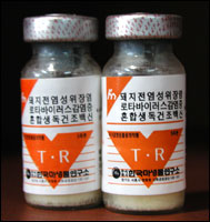 성분 및 분량 돼지 전염성위장염 20.000(%), 돼지 로타바이러스 30.000(%), SPGA protectives 50효능돼지 전염성위장염, 돼지 로타바이러스 감염증에 의한 설사증을 예방할 목적으로 사용용법 및 용량분만 5-6주전에 1차 접종, 분만2-3주전에 2차접종 하여야 하며, 접종부위는 대퇴부 근육에 2.0ml씩 접종