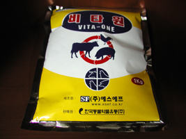 성분 및 함량 (본제1kg중) Vitamin A 4,000,000iu, Vitamin D3 1,000,000iu, Vitamin E 1,500iu, Vitamin K3 1,000mg, Vitamin B1 1,000mg, Vitamin B2 10,000mg, Vitamin B6 750mg, Vitamin B12 500㎍, Vitamin C 1,000mg, Niacin 10,000mg, Calcium pantothenate 10,000mg, dℓ-methionine 5,000mg Folic acid 50mg, 부형제(포도당) 적량