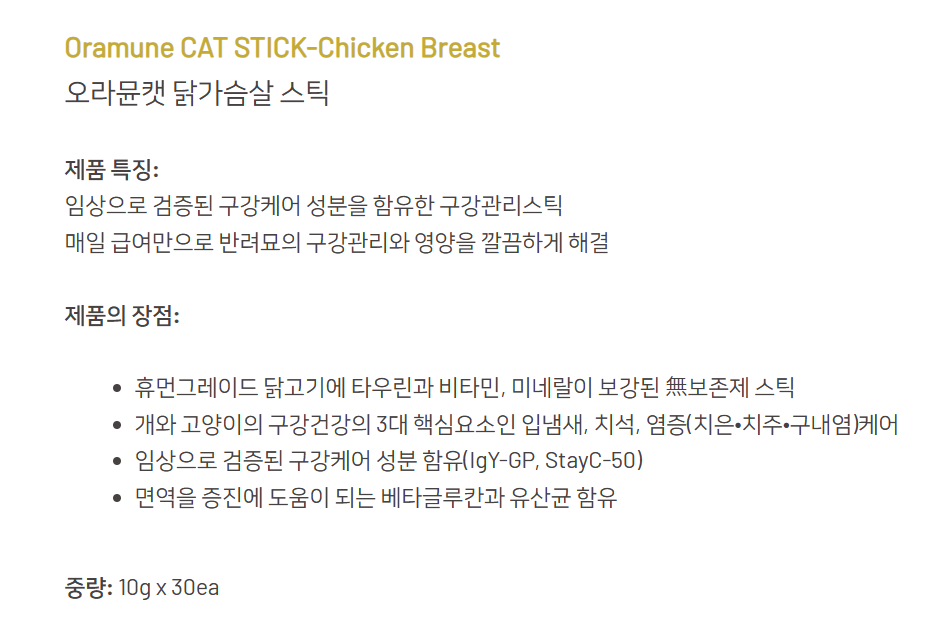 오라뮨캣 닭가슴살스틱